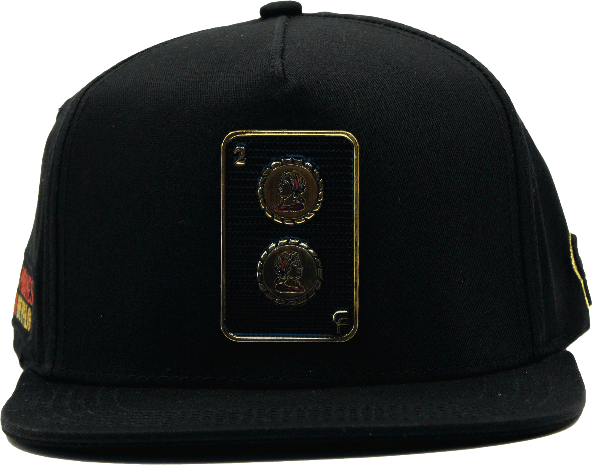 Dos de Oros Negro, de la Colección "los Mirones son de palo" Placa de metal, pin metálico y bordado lateral.