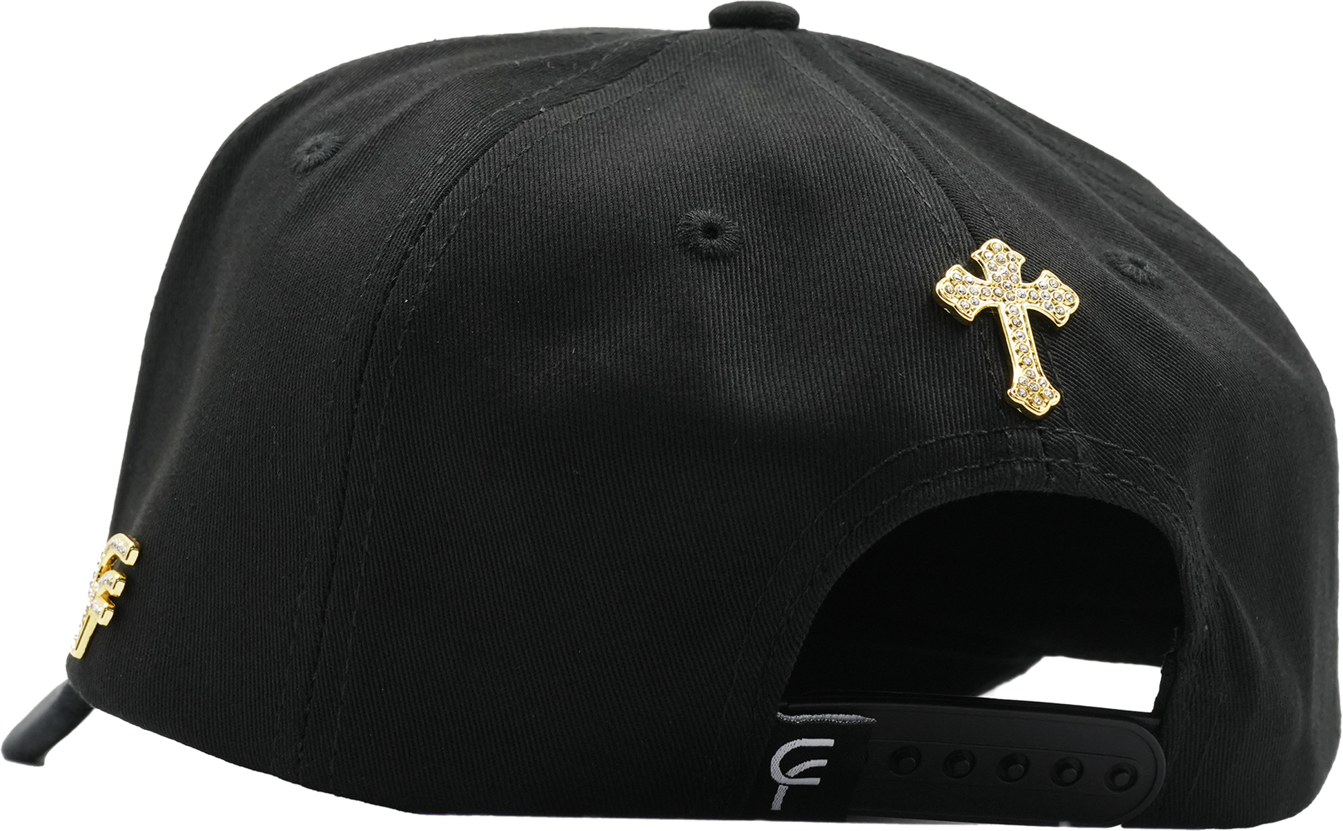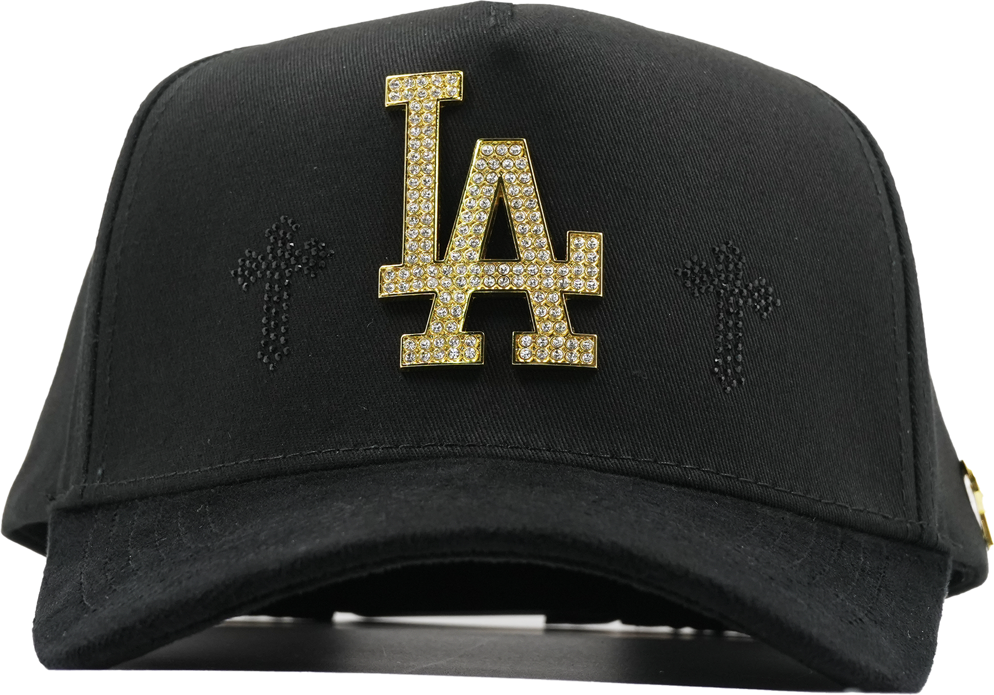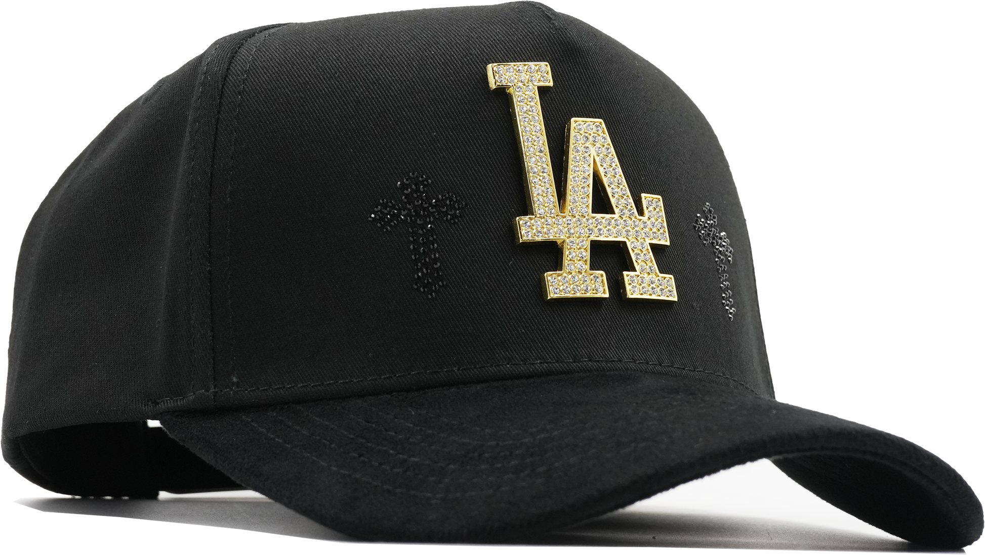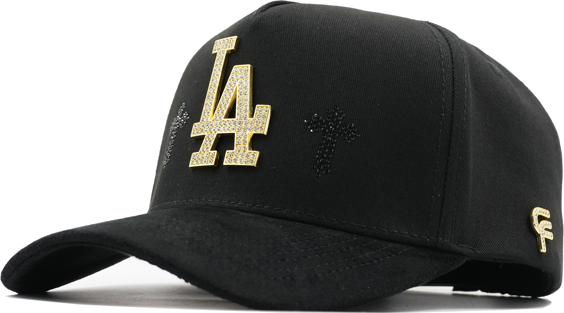 Gorra Curva florence caps con visor en gamuza, placa de metal con incrustaciones, pines de metal y detalles bordados
