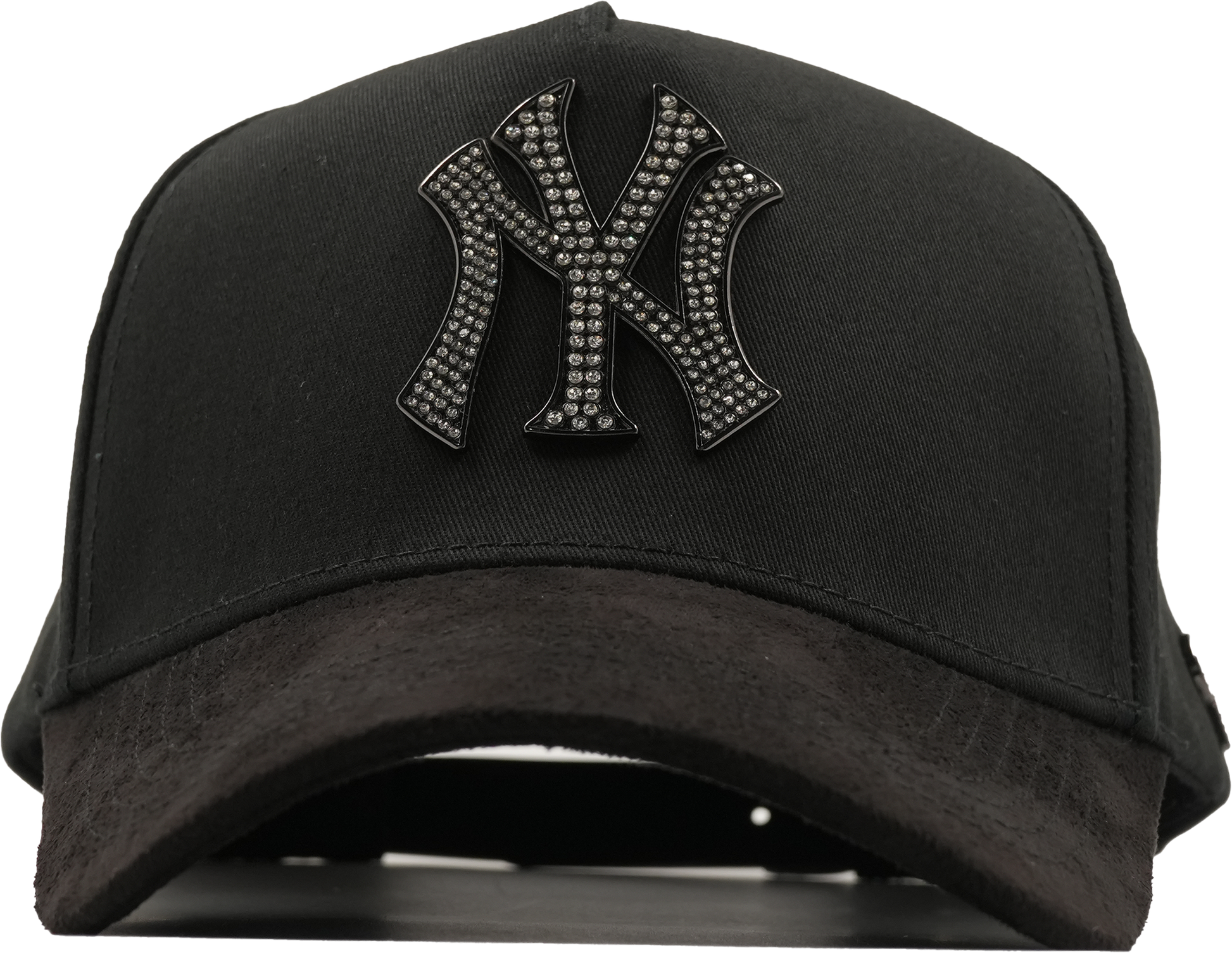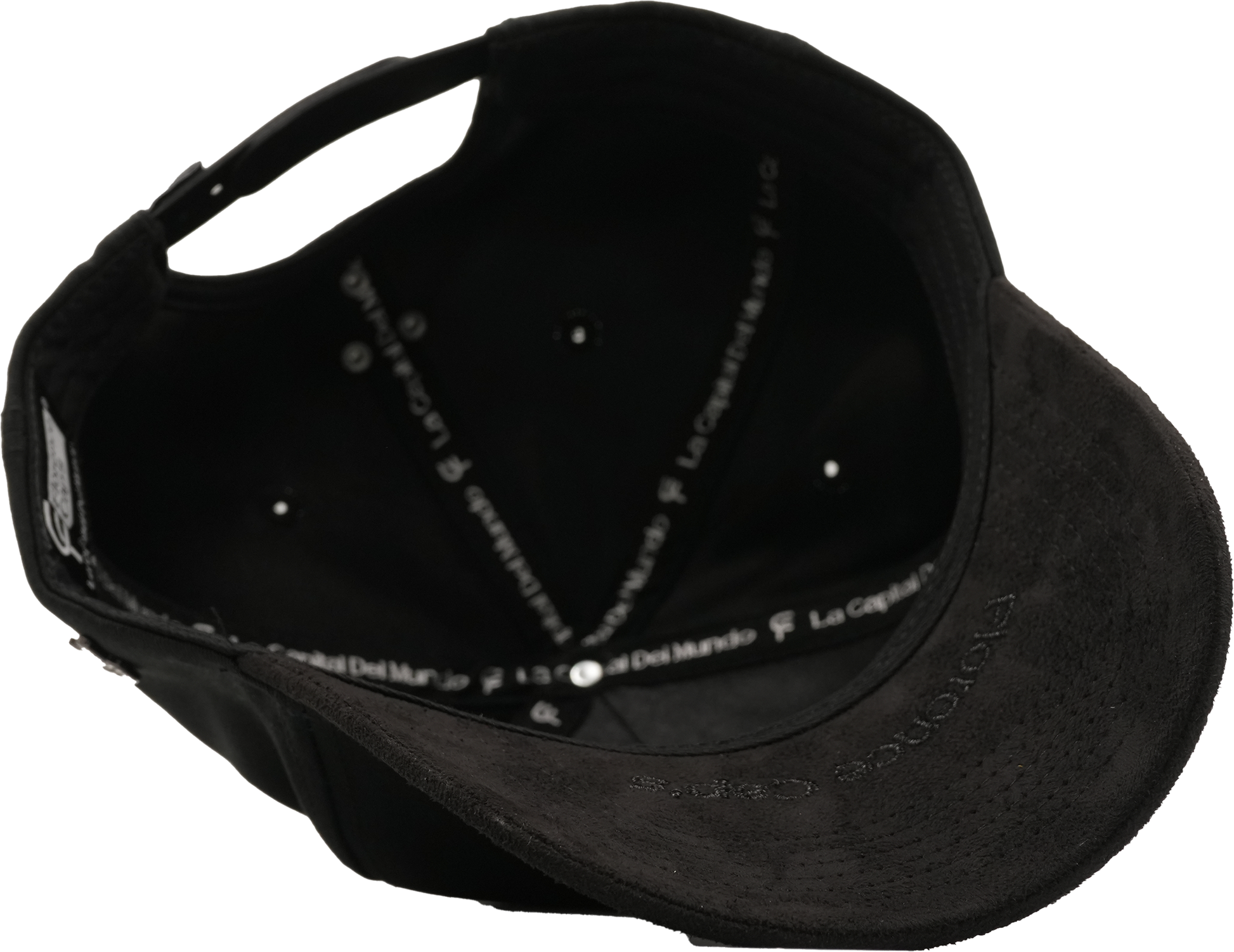Gorra Curva florence caps con visor en gamuza, placa de metal con incrustaciones, pines de metal y detalles bordados